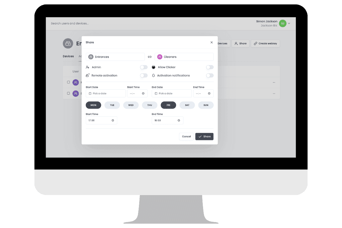 In diesem Beispiel haben Cleaners nur montags und freitags von 17.00 bis 18.00 Uhr Zugang. So können sie ihre Arbeit erledigen, ohne unbegrenzten Zutritt zu haben.