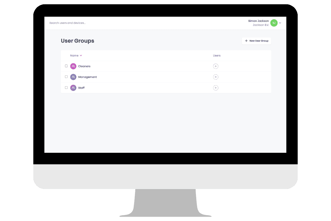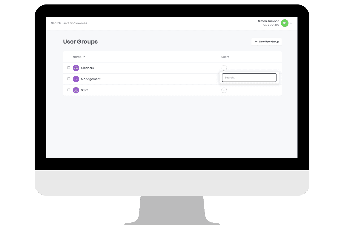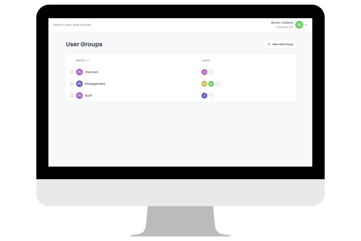 Benutzergruppen bündeln Personen mit derselben Rolle. Statt den Zugang pro Person einzurichten, definieren Sie Rechte auf Rollenebene. Manager erhalten beispielsweise Zugang zu allen Bereichen, Mitarbeitende nur zu ihren Arbeitsbereichen und temporäre Kräfte innerhalb festgelegter Zeiten. Ändert sich etwas im Team oder an einer Rolle, passen Sie es in wenigen Sekunden an.
