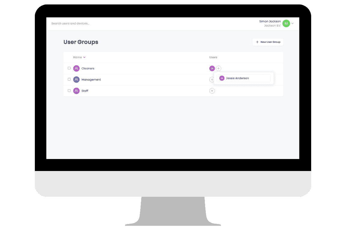 Fügen Sie eine neue Mitarbeiterin oder einen neuen Mitarbeiter hinzu, müssen Sie nichts pro Tür einstellen. Sie wählen einfach die passende Gruppe, Management, Staff oder Cleaners, und der Zugang ist sofort korrekt eingerichtet.