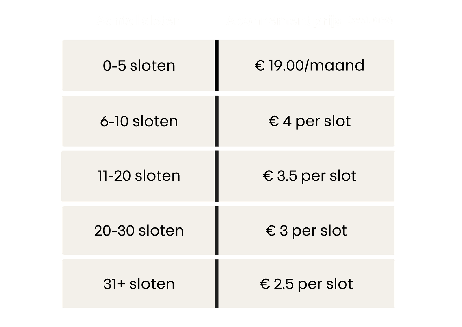 ✓ Extra sloten toevoegen wanneer je wilt, allemaal onder één abonnement