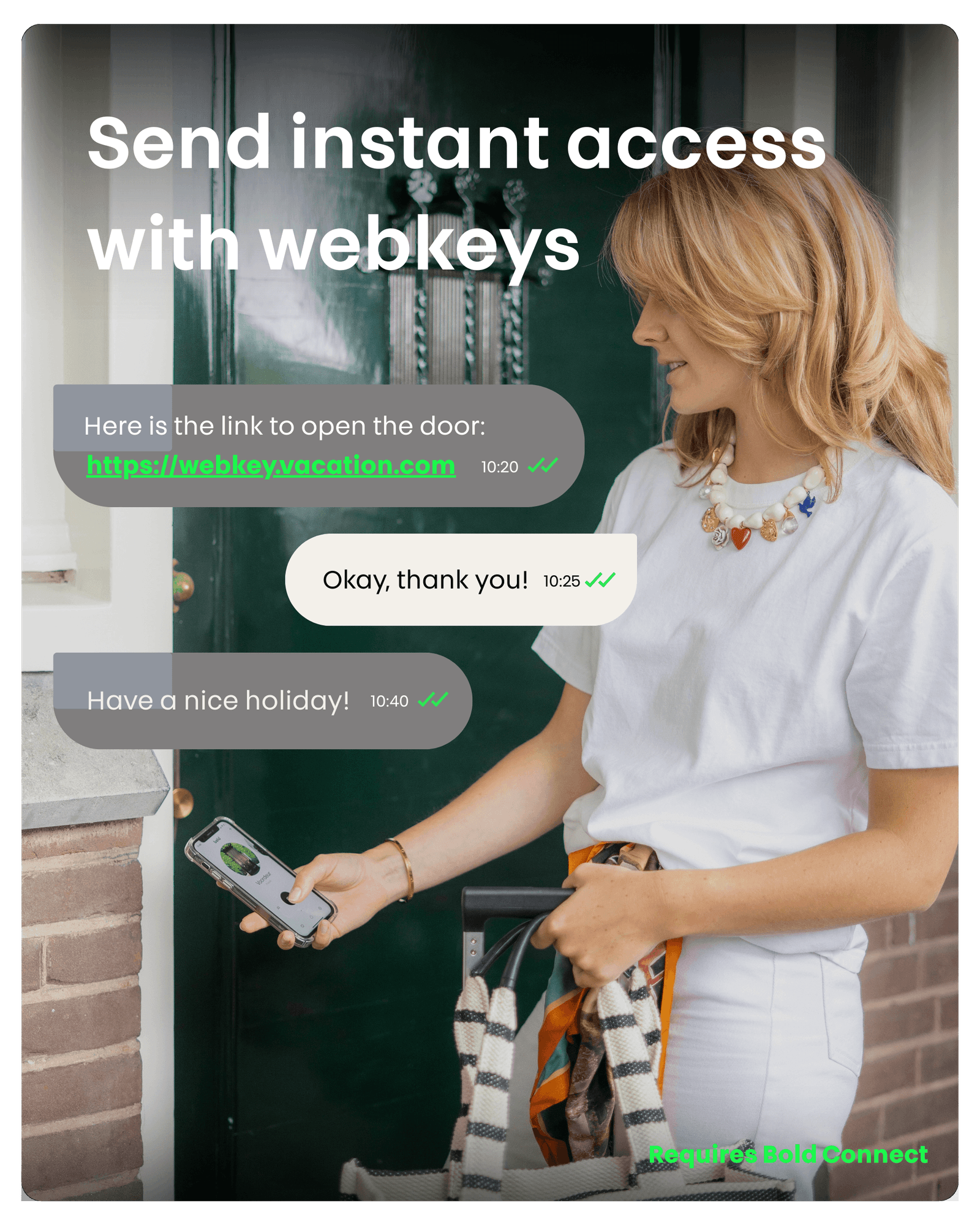 Give instant access with webkeys to visitors, contractors, or customers - no app required.